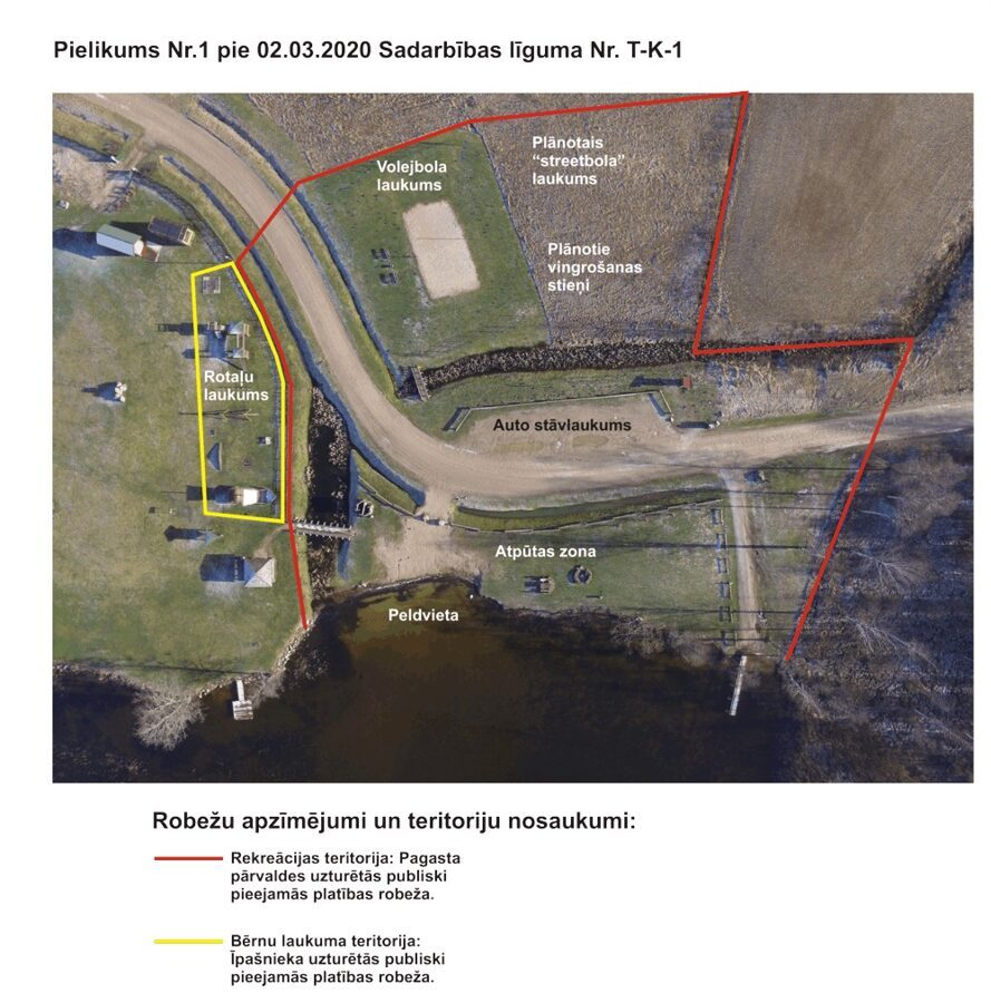 Daļa no publiski pieejamās zonas, ko apsaimnieko pagasts ir volejbola laukums. Tajā ir ierīkots pludmales volejbola laukums ar skatītāju skoliņiem un atkritumu tverti. Uz laukumu var nokļūt ejot gar peldvietas stāvlaukumu - pāri tiltiņam.